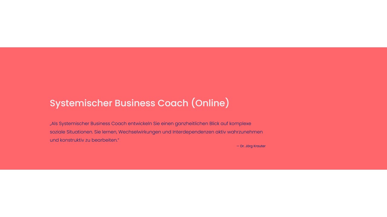 Als Coaching-Spezialist mit breiter Methodenkompetenz können Sie Coachings in den Bereichen Führung, Vertrieb und Management (Executive) im Rahmen nationaler und internationaler Projekte und Aufgaben durchführen.